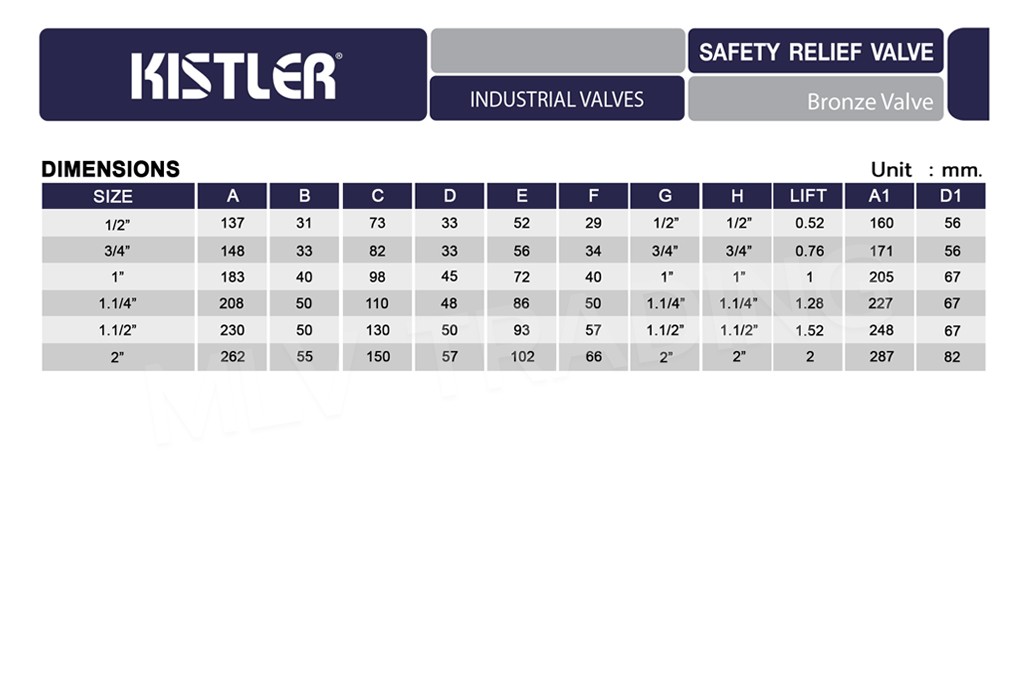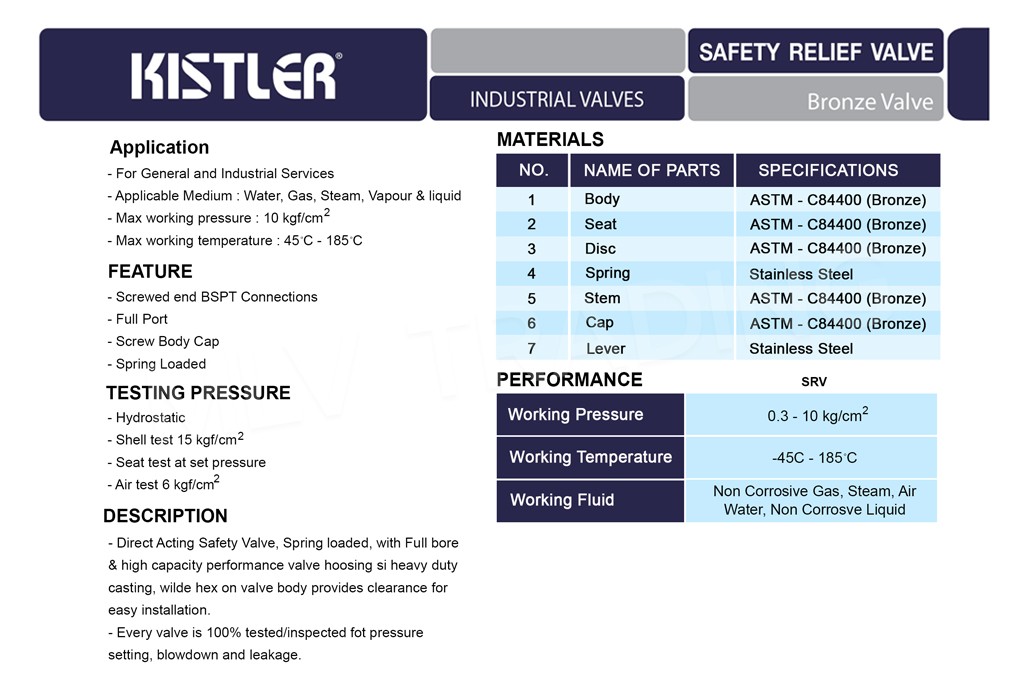 เซฟตี้รีลิฟ วาล์ว Bronze เกลียว มีก้าน รุ่น SRV-L KISTLER