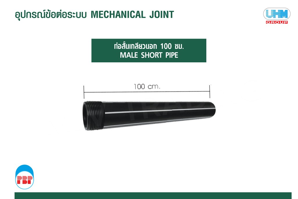 ท่อสั้นเกลียวนอก PP 30 ซม. ตรา PBP UHM 50 มม. x 2"