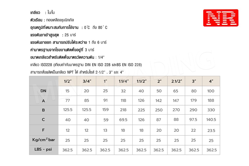 ฟุตวาล์วสปริง รุ่น YORK NR 108