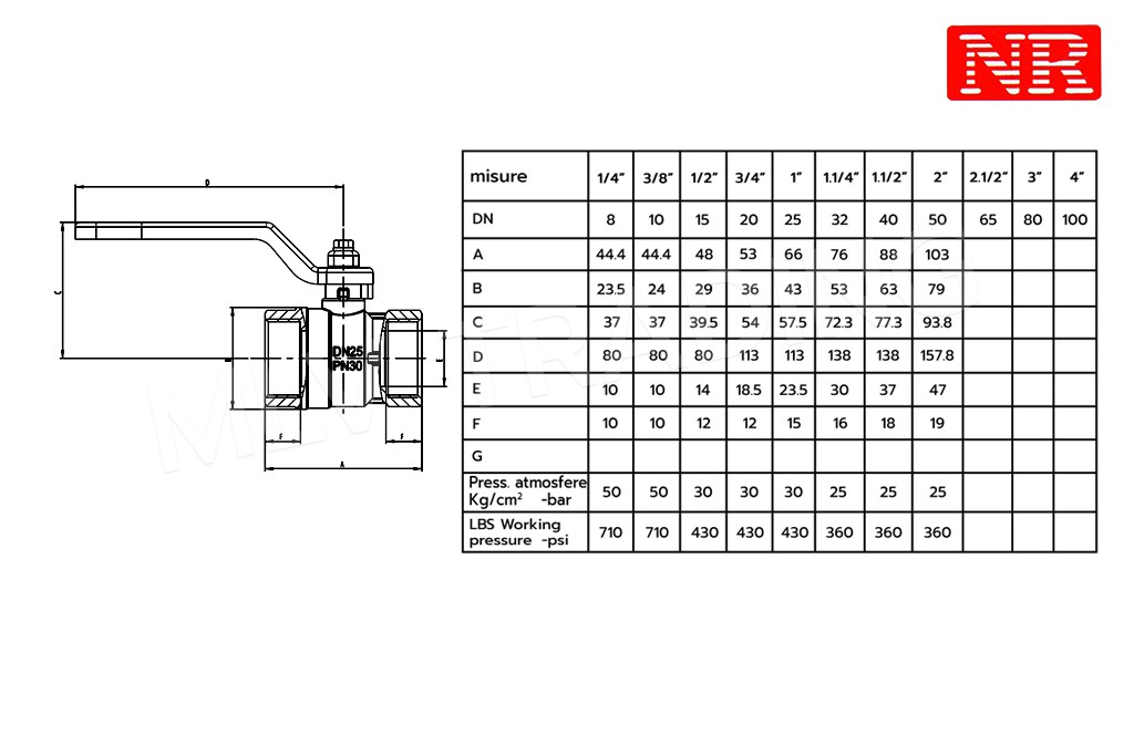 บอลวาล์ว รูน้ำเต็ม เกลียว ม.ม. NR 216