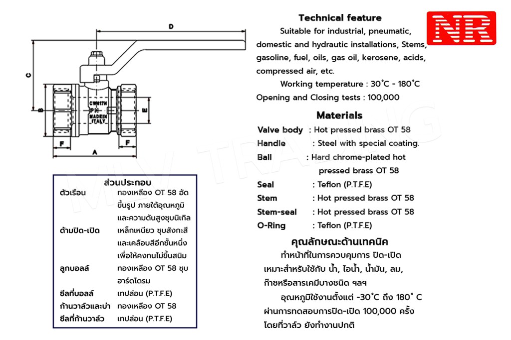 บอลวาล์ว เกลียว ผ.ม. ด้าม L NR 112