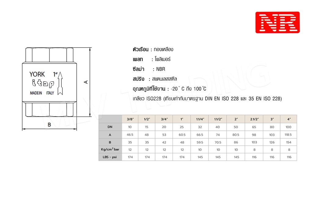 ฟุตวาล์วสปริง รุ่น YORK NR 108