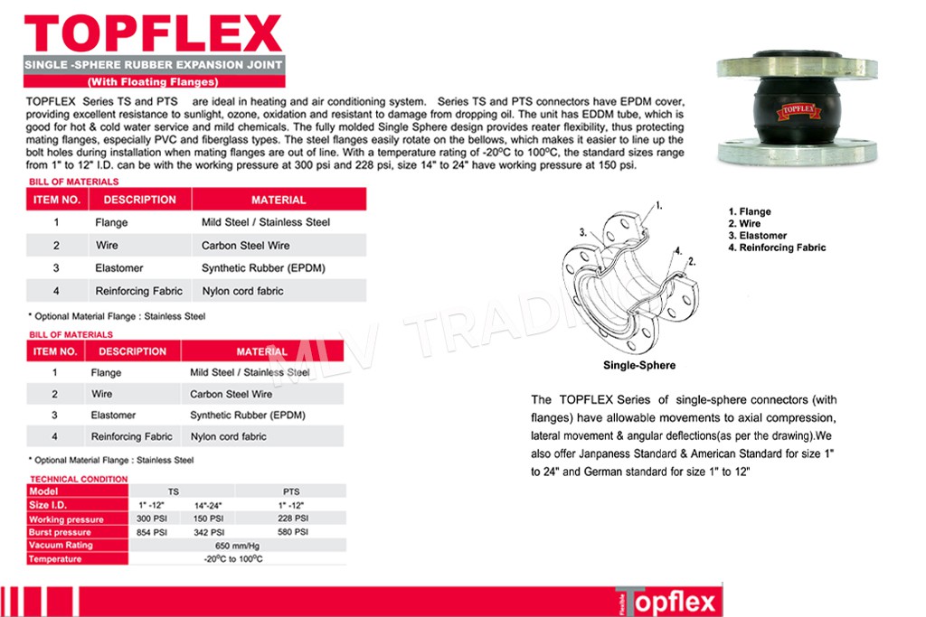 ยอยยางเดี่ยว TOPFLEX TS ญี่ปุ่น NBR PN16 1"