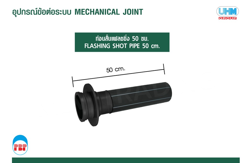 ท่อนสั้นแฟลชชิ่งสำหรับอ่างล้างมือ PP 50 ซม. ตรา PBP UHM 50 มม. (2")