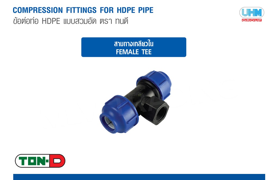 ข้อต่อตรงเกลียวใน สวมอัด HDPE ตรา ทนดี UHM