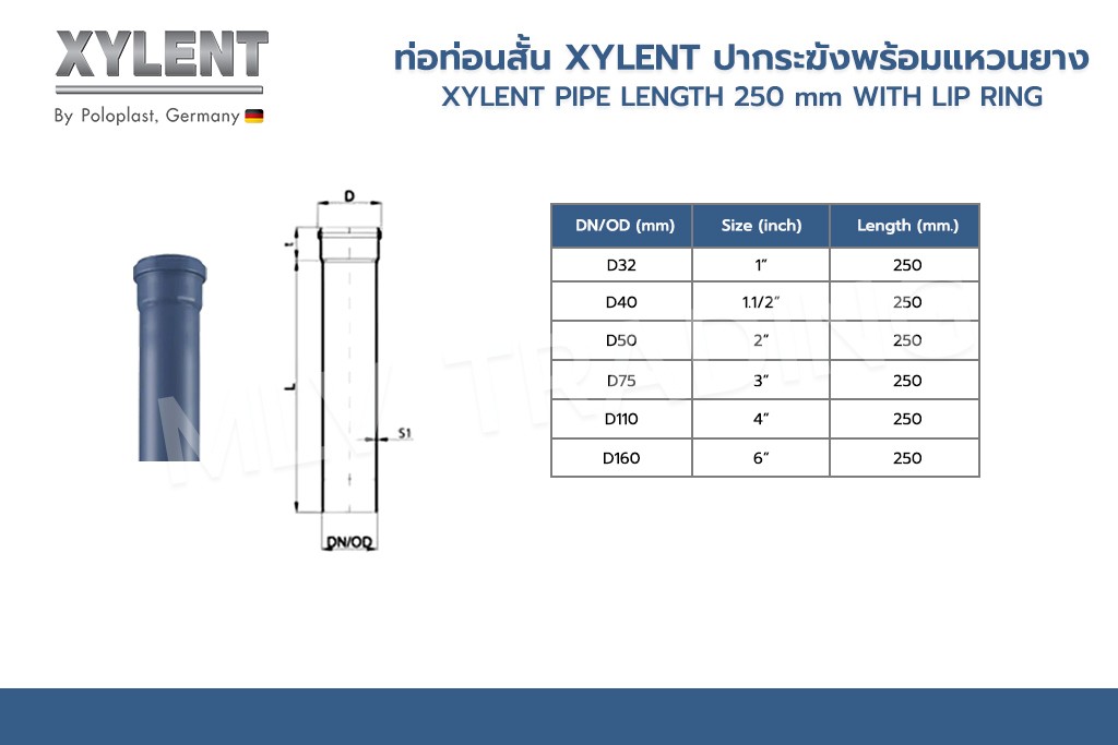 ชื่อ English : PIPE LENGTH 250 mm WITH LIP RING XYLENT