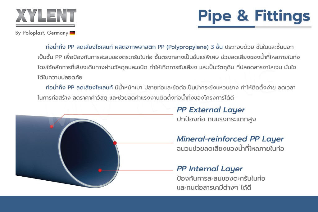 ชื่ออื่น : ท่อน้ำทิ้ง PP ลดเสียง 3 ชั้น