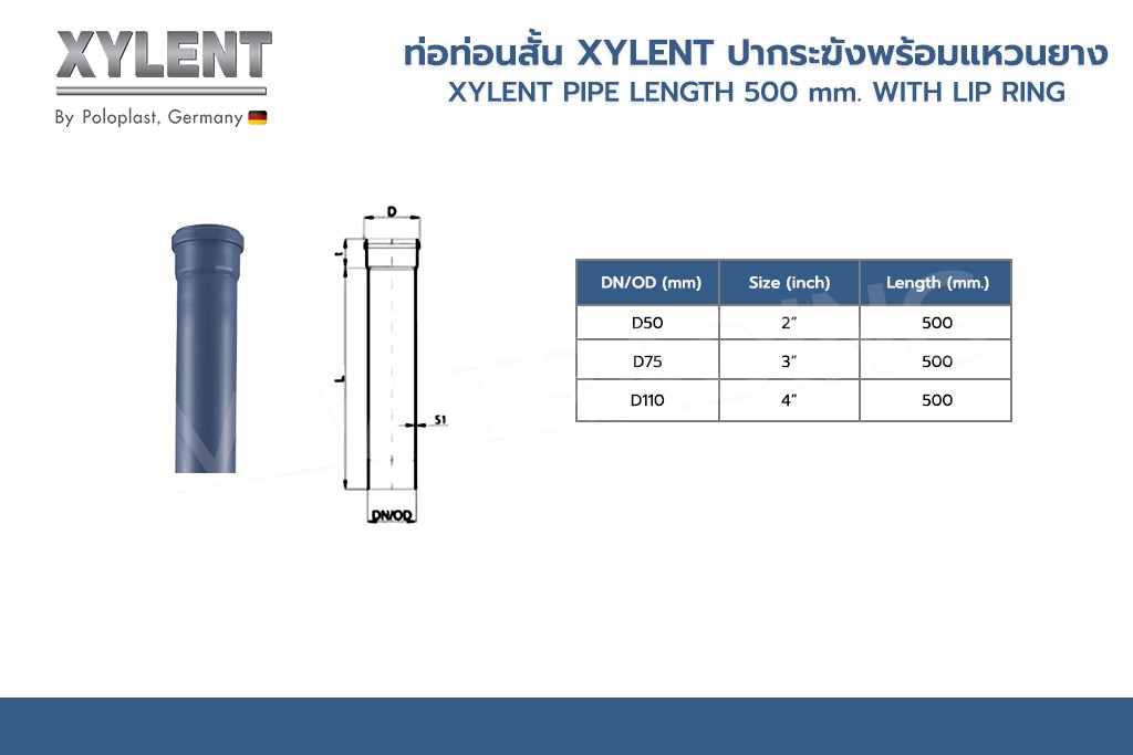 ชื่อ English : PIPE LENGTH 500 mm WITH LIP RING XYLENT