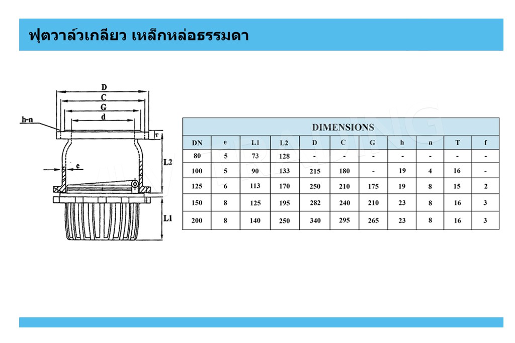 ฟุตวาล์วเกลียวเหล็กหล่อสีดำ หัวกลม
