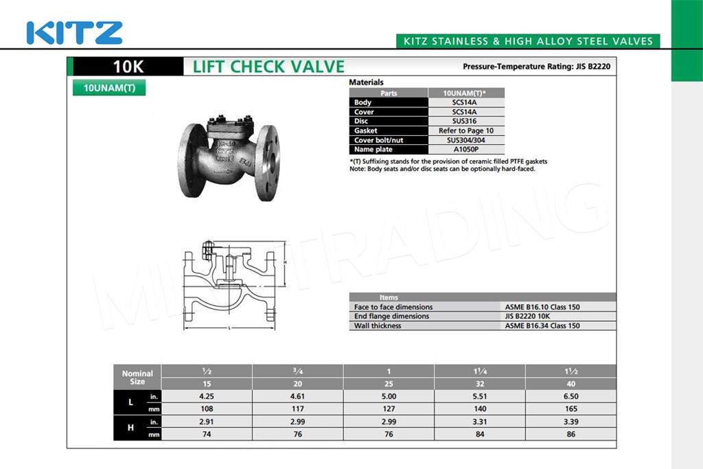 เช็ควาล์วสเตนเลส #316 หน้าจาน Class 10K 10UOAM KITZ