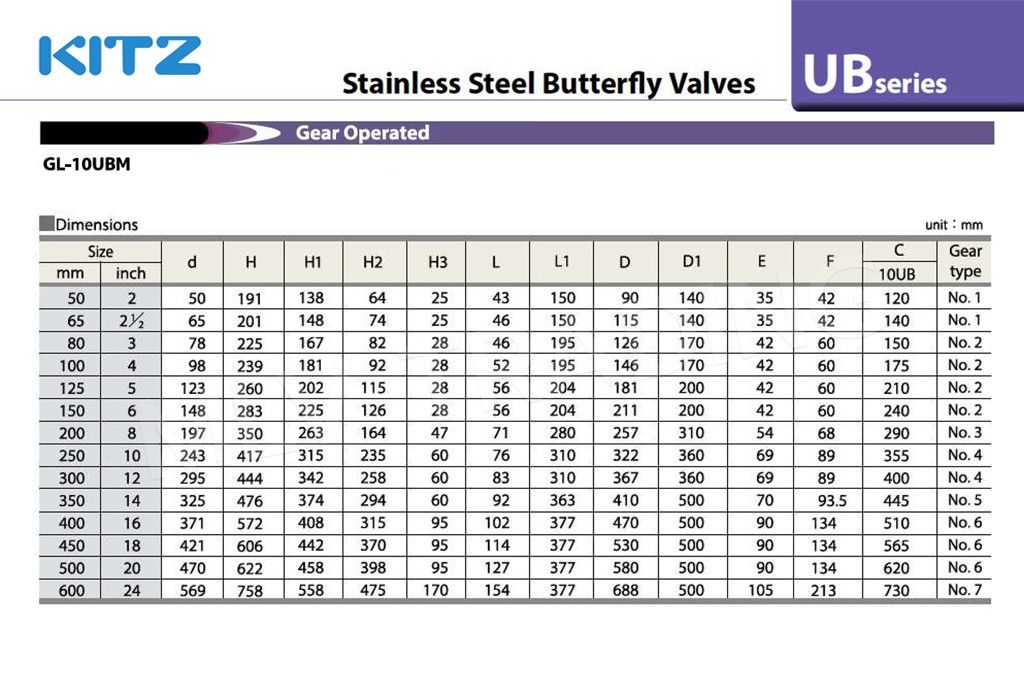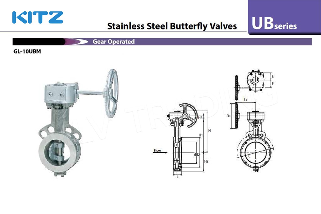 วาล์วผีเสื้อสเตนเลส316 เกียร์ เทปล่อน 150 รุ่น GL-150UBM KITZ