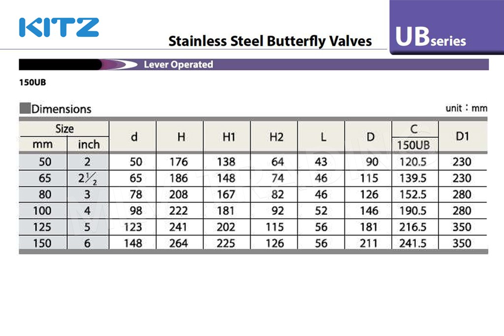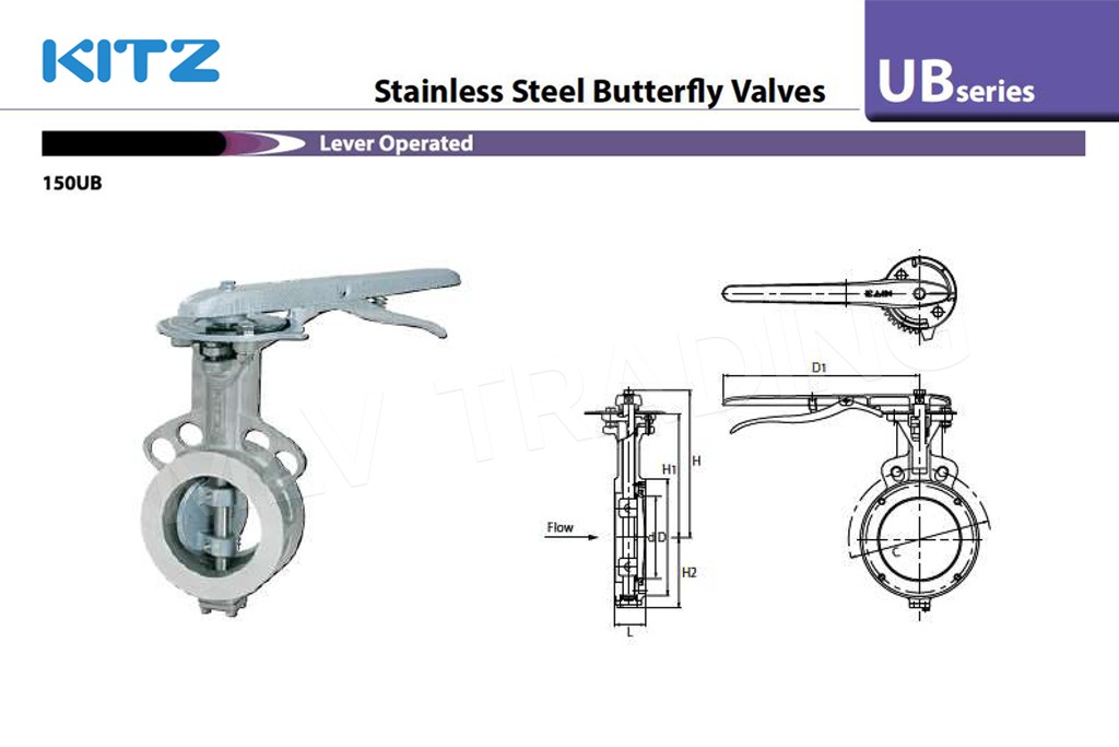 วาล์วผีเสื้อสเตนเลส316 ด้ามโยก เทปล่อน150 รุ่น 150UBM KITZ