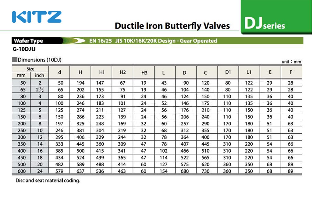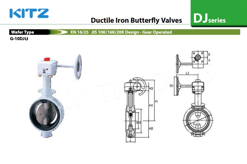 วาล์วผีเสื้อ Ductile เกียร์ EPDM 10K รุ่น G-10DJUE KITZ
