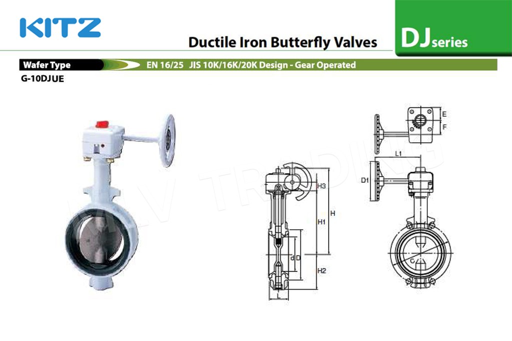 วาล์วผีเสื้อ Ductile เกียร์ NBR 10K รุ่น G-10DJ KITZ