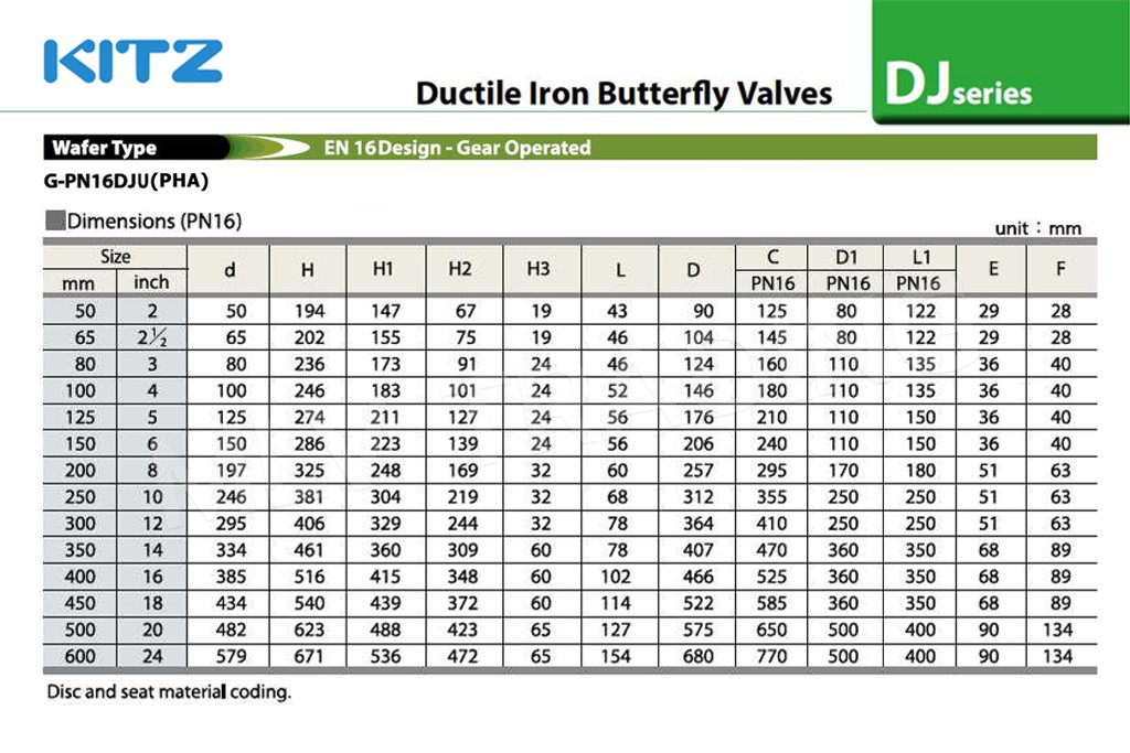 วาล์วผีเสื้อ Ductile เกียร์ EPDM(สั่งผลิต) PN16 รุ่น G-PN16DJE KITZ