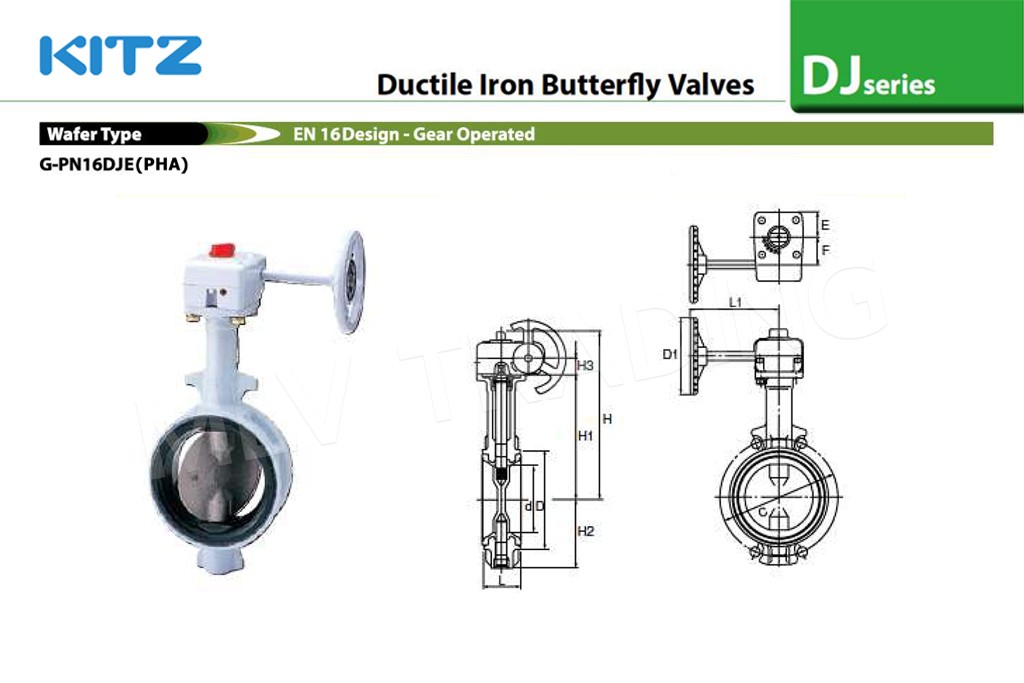 วาล์วผีเสื้อ Ductile เกียร์ EPDM PN16 รุ่น G-PN16DJUE KITZ