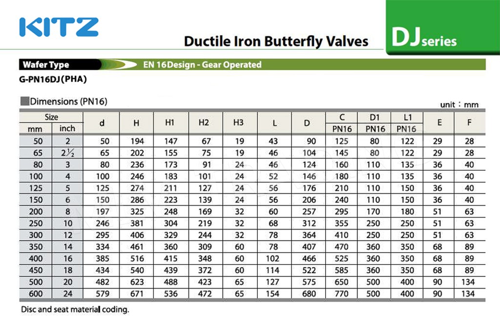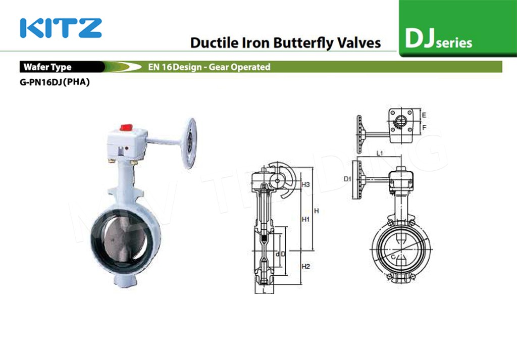 วาล์วผีเสื้อ Ductile เกียร์ EPDM(สั่งผลิต) PN16 รุ่น G-PN16DJE KITZ