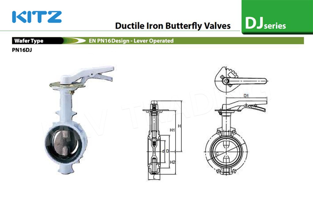 วาล์วผีเสื้อ Ductile ด้ามโยก NBR(สั่งผลิต) PN16 รุ่น PN16DJU KITZ