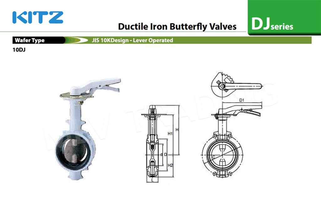 วาล์วผีเสื้อ Ductile ด้ามโยก EPDM(สั่งผลิต) 10K รุ่น 10DJE KITZ