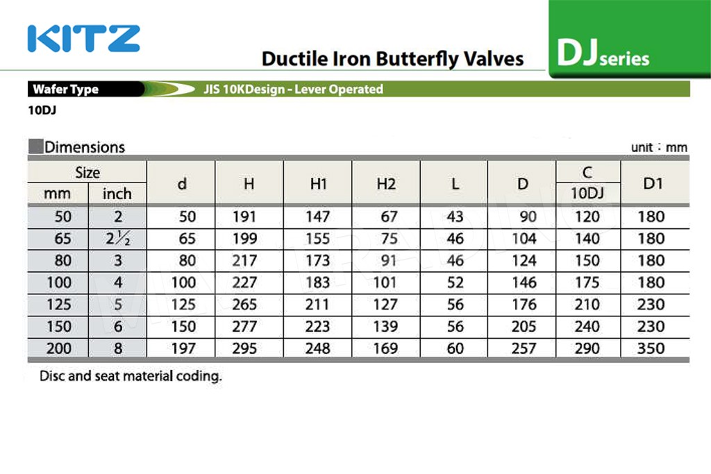 วาล์วผีเสื้อ Ductile ด้ามโยก NBR(สั่งผลิต) PN16 รุ่น PN16DJU KITZ