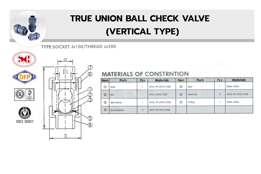 บอลเช็ควาล์ว UPVC ขายูเนียน 1 ข้าง ชนิดเกลียว SH